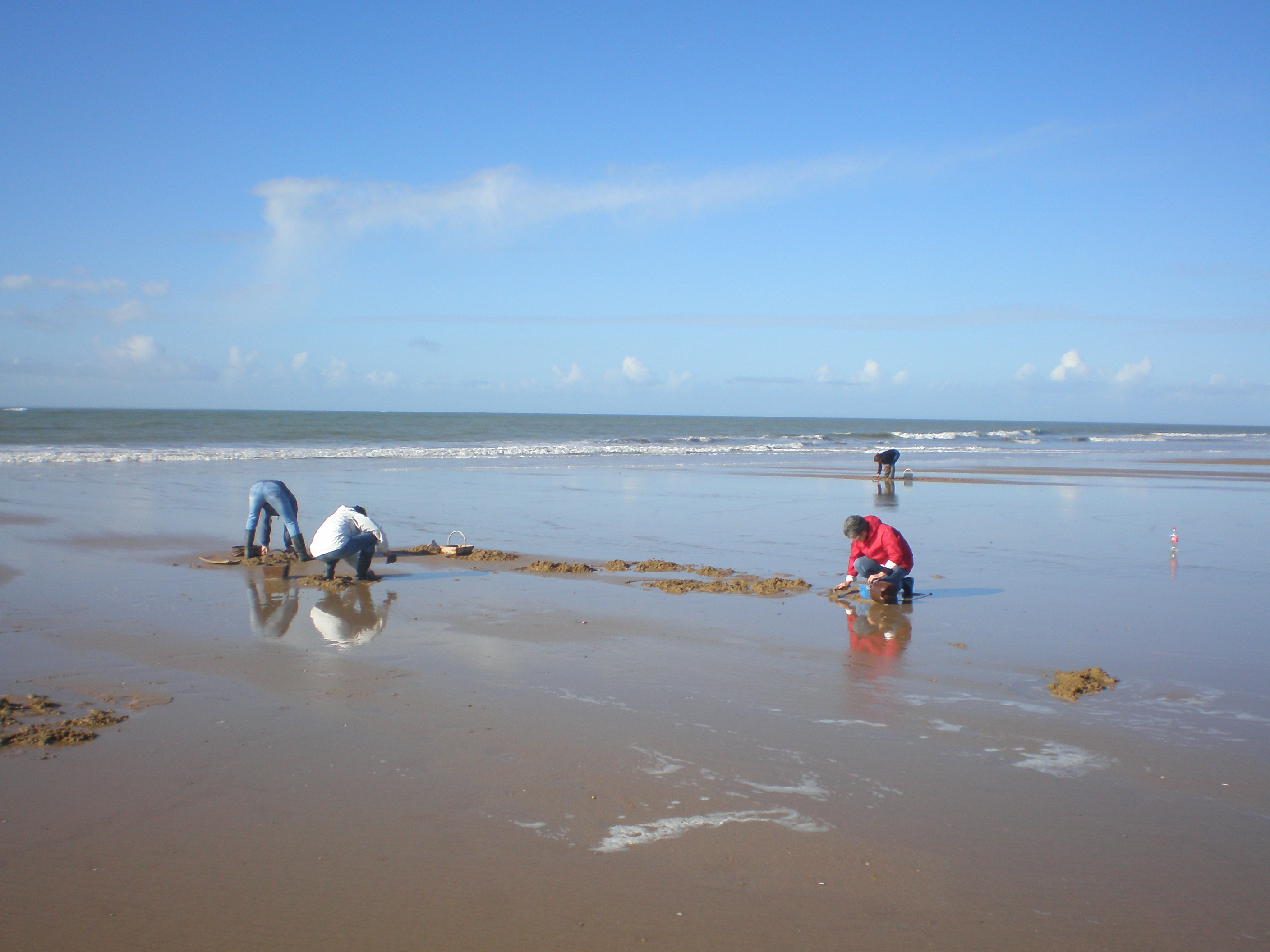 Encore qu’à Saint Jean de Monts (Vendée) il est possible à marée basse de faire du char à voile ou de pêcher les succulents pignons. On les appelle tellines dans d’autres contrées. Préparés avec de l’ail et de la crème fraîche, c’est un régal qui vous surprendra.